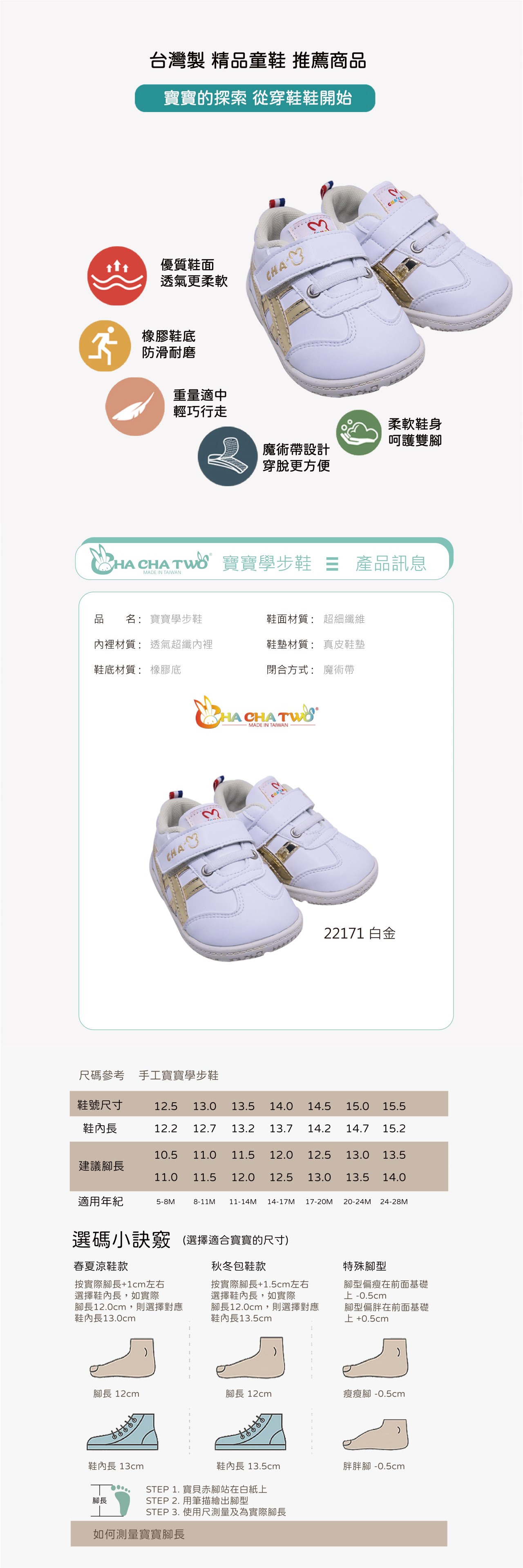 ✔️ 鞋底:高彈性橡膠|防滑耐磨,學步更安全